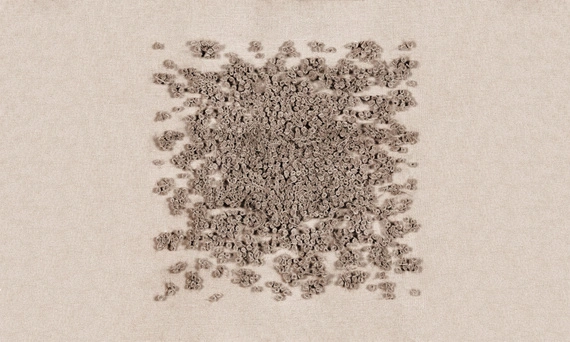 Tapeta „Centro” to wzór o organicznej strukturze i geometrycznym skupieniu, który przyciąga uwagę swoją rzeźbiarską formą. Kompozycja przypomina skupisko tysięcy drobnych, zrolowanych elementów – jakby wykonanych z miękkiej tkaniny, kory lub papieru czerpanego – ułożonych w nieregularną, lecz zwartą formę w centrum pola. Kształty rozmywają się i przenikają w otaczającą je przestrzeń, tworząc wrażenie naturalnej ewolucji formy: od gęstości do ulotności. Ta gra światła i cienia sprawia, że powierzchnia wydaje się niemal trójwymiarowa. „Centro” opowiada o skupieniu i rozproszeniu, o centrum, z którego rozchodzi się pulsująca energia – interpretacja może być zarówno symboliczna, jak i czysto dekoracyjna.